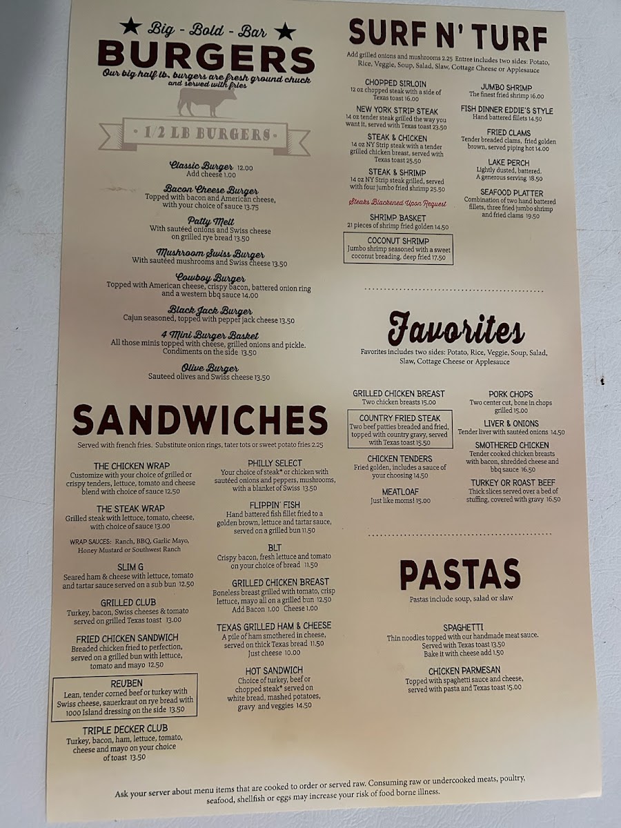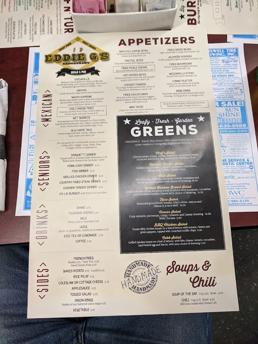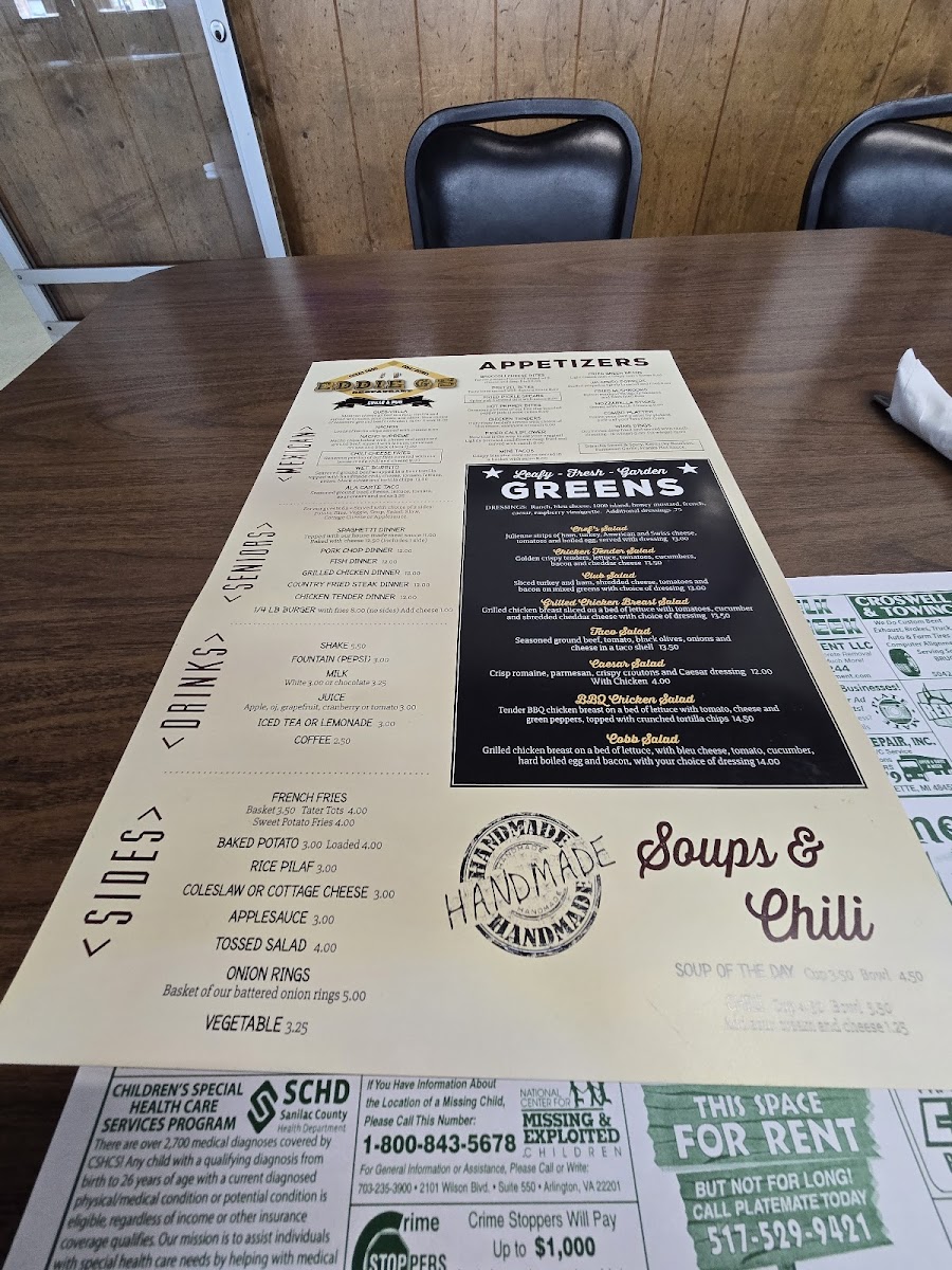Welcome to Eddie G's, a delightful culinary gem located at 6484 W Marlette Rd, Marlette, MI. This unique eatery specializes in classic American comfort food that aims to please every palate. The menu features tantalizing options such as the Steak and Shrimp Dinner and the Country Fried Steak Dinner, both at unbeatable prices. Customers rave about the handmade burgers, consistently praised for their incredible flavor and quality.